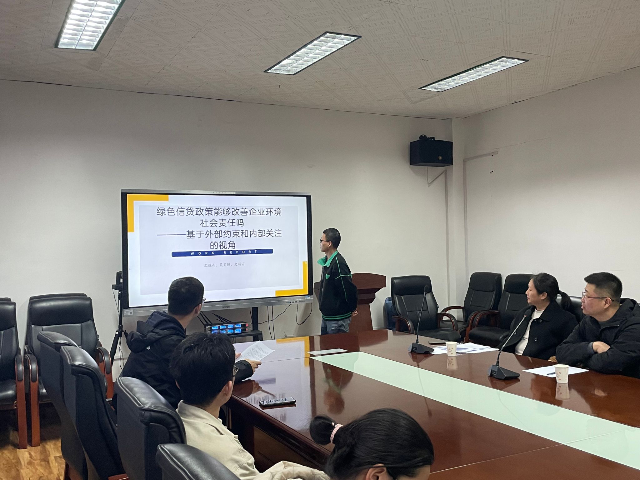 2023年4月27日晚,welcome光临必发集团2022-2023学年第12期学术沙龙活动在王梦帆同学的主持下如期举行,本次沙龙的主题是"绿色信贷政策能够改善企业环境社会责任吗—基于外部约束和内部关注的视角",由2022级金融专硕班的吴昊阳同学和史新宙同学为大家作汇报讲解,本次沙龙有幸邀请到闫丽瑞老师和范瑞老师作为讲评嘉宾,参加这次学术沙龙的是2022级各专业学生。