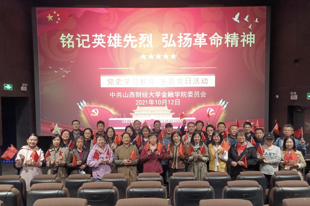 为庆祝中华人民共和国成立72周年及深入开展党史学习教育活动,2021年10月12日下午,我院以“铭记英雄先烈,弘扬革命精神”为主题开展党日活动,学院党委书记郭东辉、副书记陈晓虎与部分教师党员40余人,集体观看了爱国主义影片《长津湖》,一起重温那段波澜壮阔的历史,深刻体悟伟大抗美援朝精神。