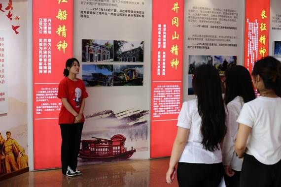 活动伊始,本科生第三党支部成员们在红馆讲解员的带领下,了解了中国共产党在一百年多年的非凡奋斗历程中,通过一代又一代中国共产党人顽强拼搏、不懈奋斗,涌现了一大批视死如归的革命烈士、一大批顽强奋斗的英雄人物、一大批忘我奉献的先进模范,形成了一系列伟大精神,构筑起了中国共产党人的精神谱系,为我们立党、兴党、强党提供了丰厚滋养。讲解员指尖所指之处皆是大家目光所及之处,中国共产党百年红色精神谱系背后的故事持续的感动着每一位在场的支部成员。本次活动通过支部成员聆听红色精神谱系讲解的形式,带领广大成员弘扬光荣传统、赓续红色血脉,为实现伟大中国梦共同努力奋斗。