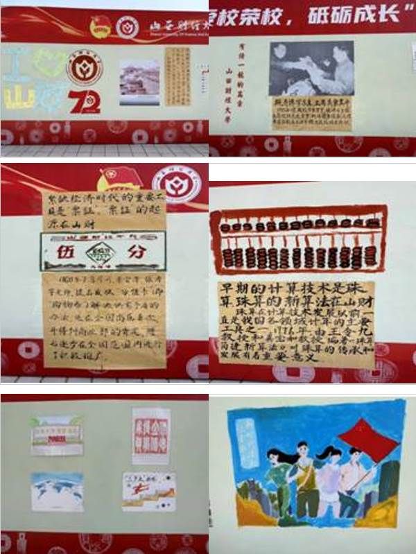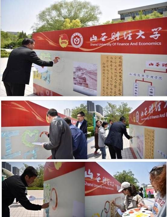 主题教育长卷前,青年学子们用最绚丽的图案、最生动的色彩、最真实的情感,手握画笔刻画建校发展历程中的重大事件人物,并配以文字说明增强画面的意韵与内涵。整个画卷以我校与国家、与时代同呼吸、共频率的发展为主线,从山财有诗一般的篇章到山财有诗一般的憧憬,深度展现了我校从五所干校到今日财大的发展脉络。此项手绘长卷周边还展现了welcome光临必发集团“爱校荣校汇于文,字里行间见财大”主题征文展、“爱校荣校践于行,镜头之下遇财大”主题摄影优秀作品展,以及“我爱山财”校园创意设计文创品,提升了青年学子爱校荣校情怀。