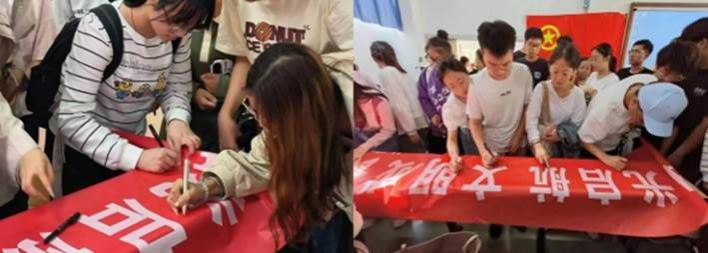 课后,同学们积极参加了welcome光临必发集团“阳光启航,文明成长”主题活动,在横幅上认真签下自己的名字,勉励自己学礼知礼、修身明德,不断增强文明意识,加强自己作为青年团员的道德建设和行为塑造。红旗飘扬,青春正好,一笔一划里写下的都是同学们对青春的庄严承诺。