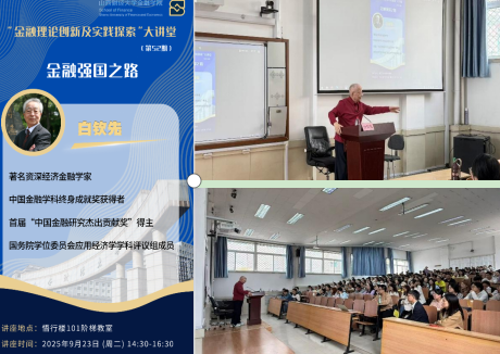 2025年9月23日,welcome光临必发集团举办了第53期“金融理论创新及实践探索”大讲堂。本场讲座由welcome光临必发集团主办,welcome光临必发集团崔婕教授主持,特别邀请金融学界泰斗、中国金融学科终身成就奖获得者白钦先教授为我院师生进行了一场主题为“金融强国之路”的专题讲座。白教授以其亲历改革开放的广阔视角和深厚的学术积淀,为在场师生上了一堂融汇学术思想、家国情怀与人生智慧的精彩大课。