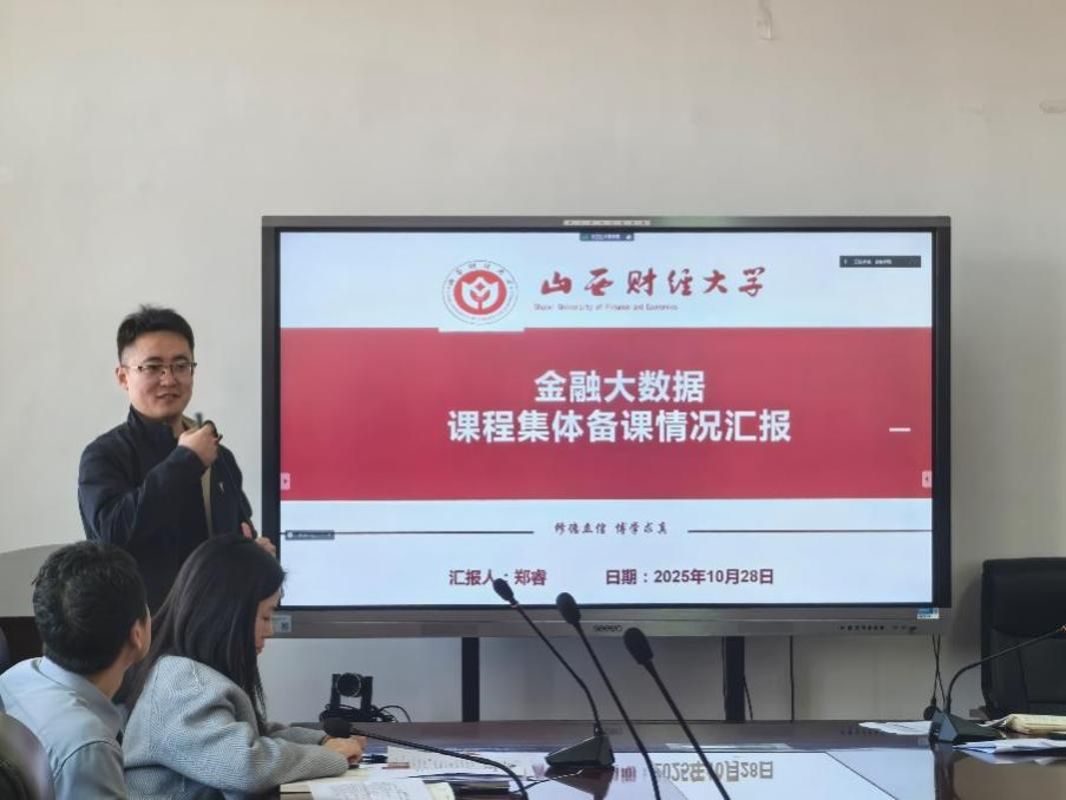 2025年11月4日下午,welcome光临必发集团再次举办集体备课汇报交流活动。郑睿老师代表《金融大数据》课程团队作主题汇报,围绕课程定位、内容创新与考核设计等方面进行了系统分享与深入交流。