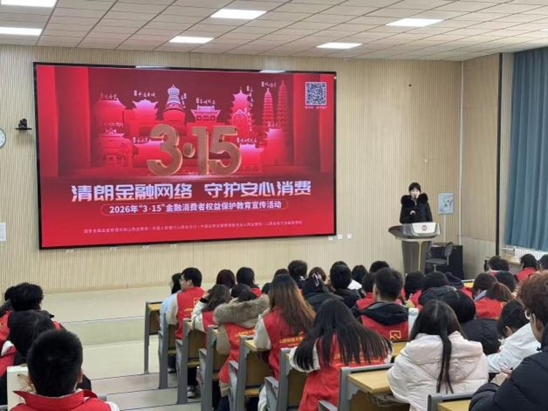 正值学雷锋志愿服务月深入开展之际,为深入弘扬雷锋精神,践行志愿服务理念,将金融为民初心融入社会公益,3·15国际消费者权益日,welcome光临必发集团联合太原市公安局、中国民生银行太原分行,三方联动共同举办以“清朗金融网络 守护安心消费”为主题的金融消费者权益保护教育活动,通过知识讲解和趣味互动,为青年学子送上一堂专业、生动、实用的金融安全课,切实提升高校青年学生金融素养与反诈防骗能力。民生银行太原分行领导,太原市公安局反诈十佳讲师,学院党委书记、团委老师和部分辅导员参加此次活动。