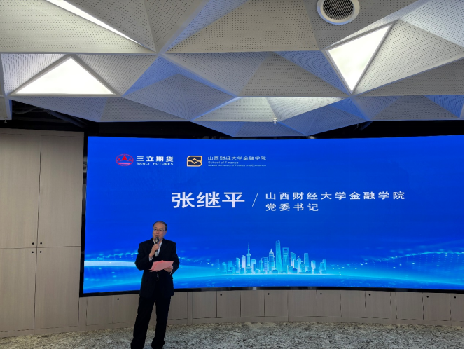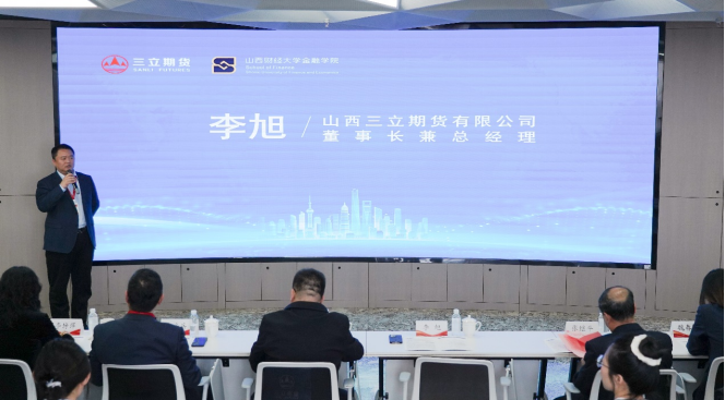 李旭董事长回顾了三立期货有限公司与我校长达25年的合作关系,强调培养具有社会责任感的优秀人才是企业的重要使命。自2001年以来,三立期货与我校通过《期货投资理论与实务》选修课共同培育了超过一千名学生,这些学生在期货及金融行业发挥了重要作用。李董事长表示,三立期货不仅致力于期货行业的发展,也为山西的能源转型和企业竞争力提升贡献力量。作为全国首批期货公司,三立期货希望未来能进一步深化与我校的合作,为学生提供更多学习和实习机会。