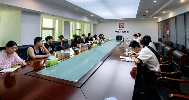 本次调研活动的第一项是就同学们感兴趣的“惠商保”、“安全生产责任保险”等项目的开展情况进行了座谈。首先,由人保财险太原市分公司王浩经理就“惠商保”目前的开展情况进行了详细的介绍。“惠商保”是由山西省委、省政府部署开展的为个体工商户提供综合保险保障的普惠保险项目,是山西省充分发挥保险的保障作用,精准纾困,提振经营信心,积极引导个体工商户融入地方经济发展的重要举措。通过此次讲解,帮助同学们更深入的了解“惠商保”的性质、作用以及保障范围、赔偿限额等。其次,“安全生产责任保险”业务负责人李岩经理给同学们介绍了人保财险安责险业务的发展历程、国家政策、市场开拓、第三方服务等情况,解答了同学们在学校理论学习中发现的一些问题。安责险也是人保财险太原分公司开展的主要业务之一,人保财险在这方面积累了丰富的实践经验,对同学们的理论知识形成了很好的补充。最后,人保财险太原市分公司栗丹总结合公司对于保险人才的需要,给我校保险专业同学们的成长提出了宝贵的意见和殷切的希望。