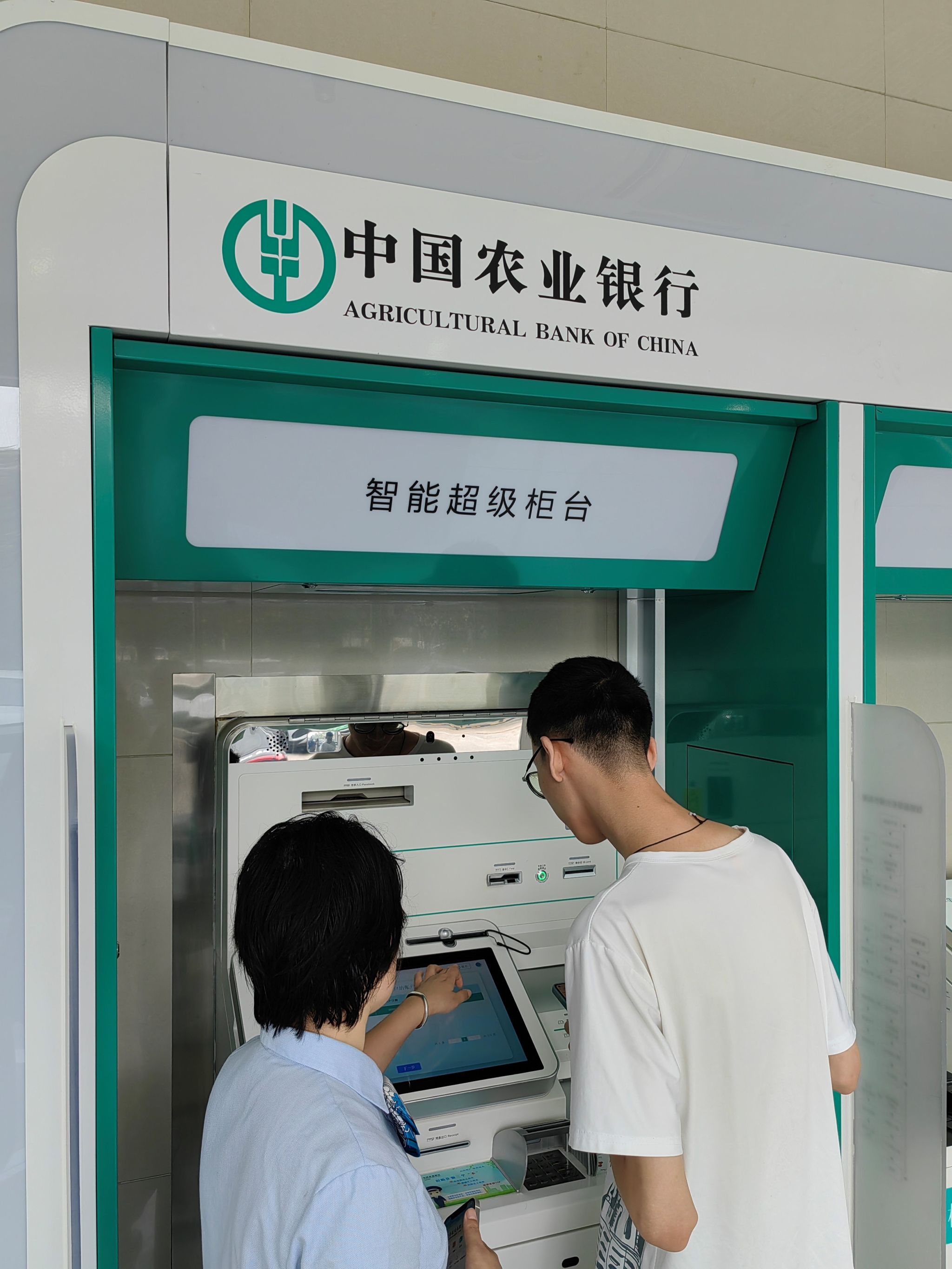 到达学府支行后,首先,在大堂经理的带领下,大家了解了银行网点的功能分区,包括办理现金存取款业务的高柜区、自助区,办理对公业务、理财业务的低柜区。在智能超级柜台上,学生们还亲自体验了开卡、开掌银业务。除了业务办理区,在客户等待区,网点还有很多暖心又人性化的配置,舒适的沙发、不同度数的老花镜、各种主题的书籍,甚至还有电子血压仪……与想像中的银行大有不同。同学们纷纷感叹,现代银行太有温度了。