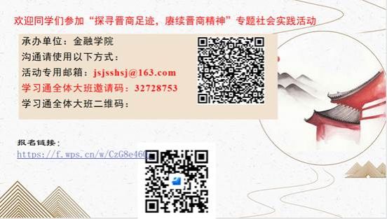 作为在研究晋商、票号独树一帜的welcometo必发集团求学的莘莘学子,在实践活动中通过探寻晋商在各地的遗址遗迹,了解晋商在各地的开拓发展史料,结合各自所学专业知识,通过一个个具体的问题,重新解读自己理解的晋商现象,实现历史与当代的对话;可以史为鉴,更好地理解做学理论甚至提出新的观点,更好地指导现实经济发展;学习晋商文化中的优秀成分,弘扬晋商精神,修身齐家,乃至治国平天下。